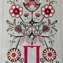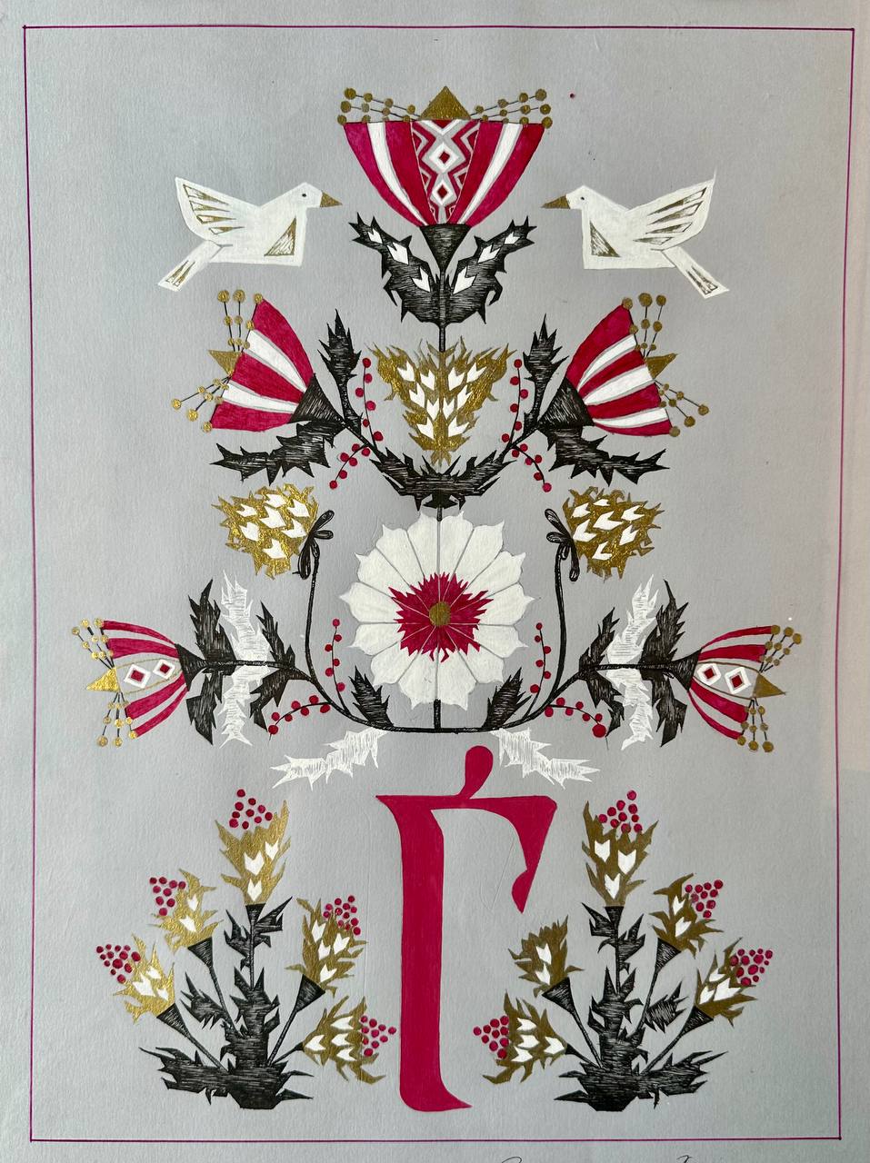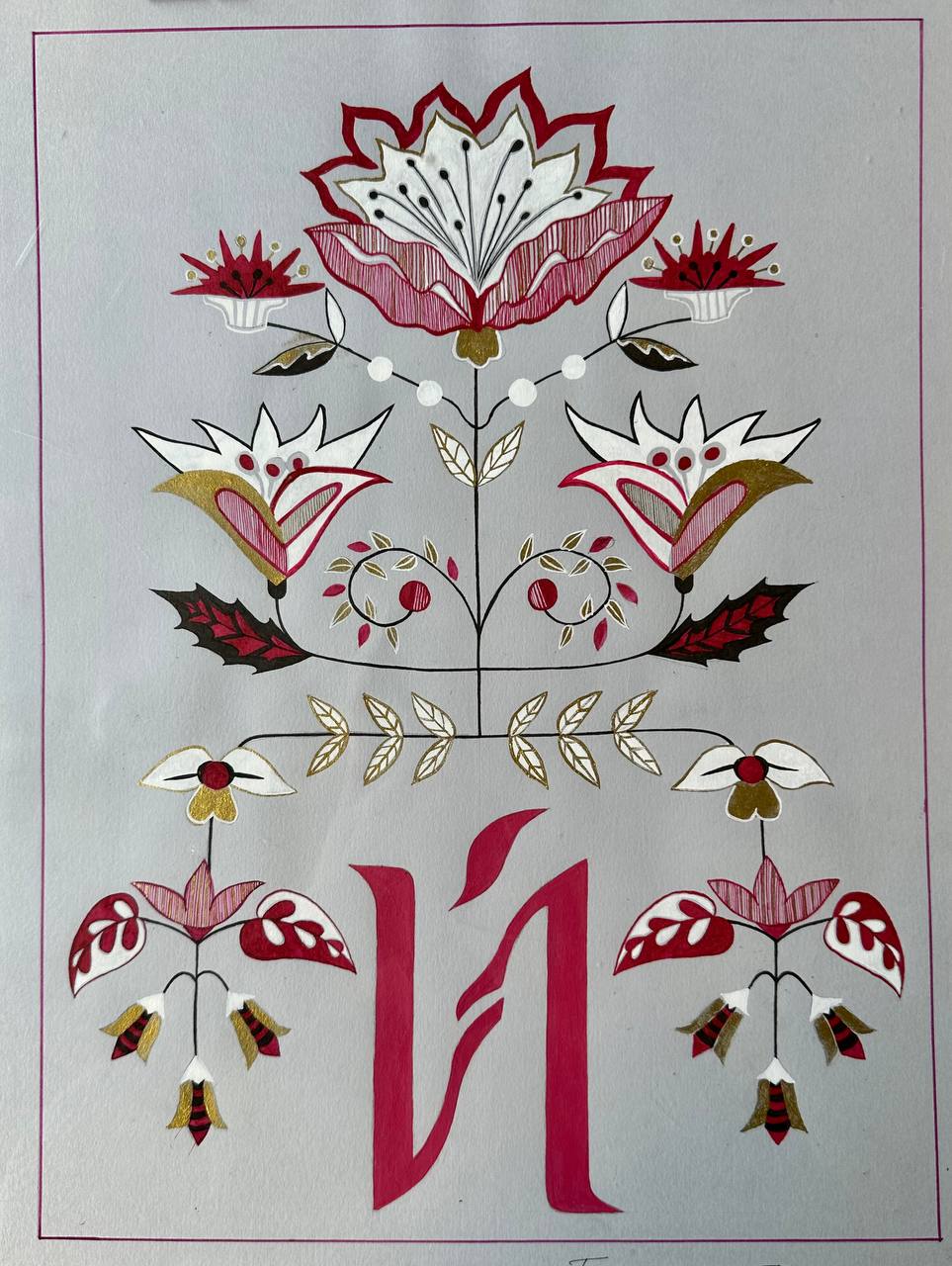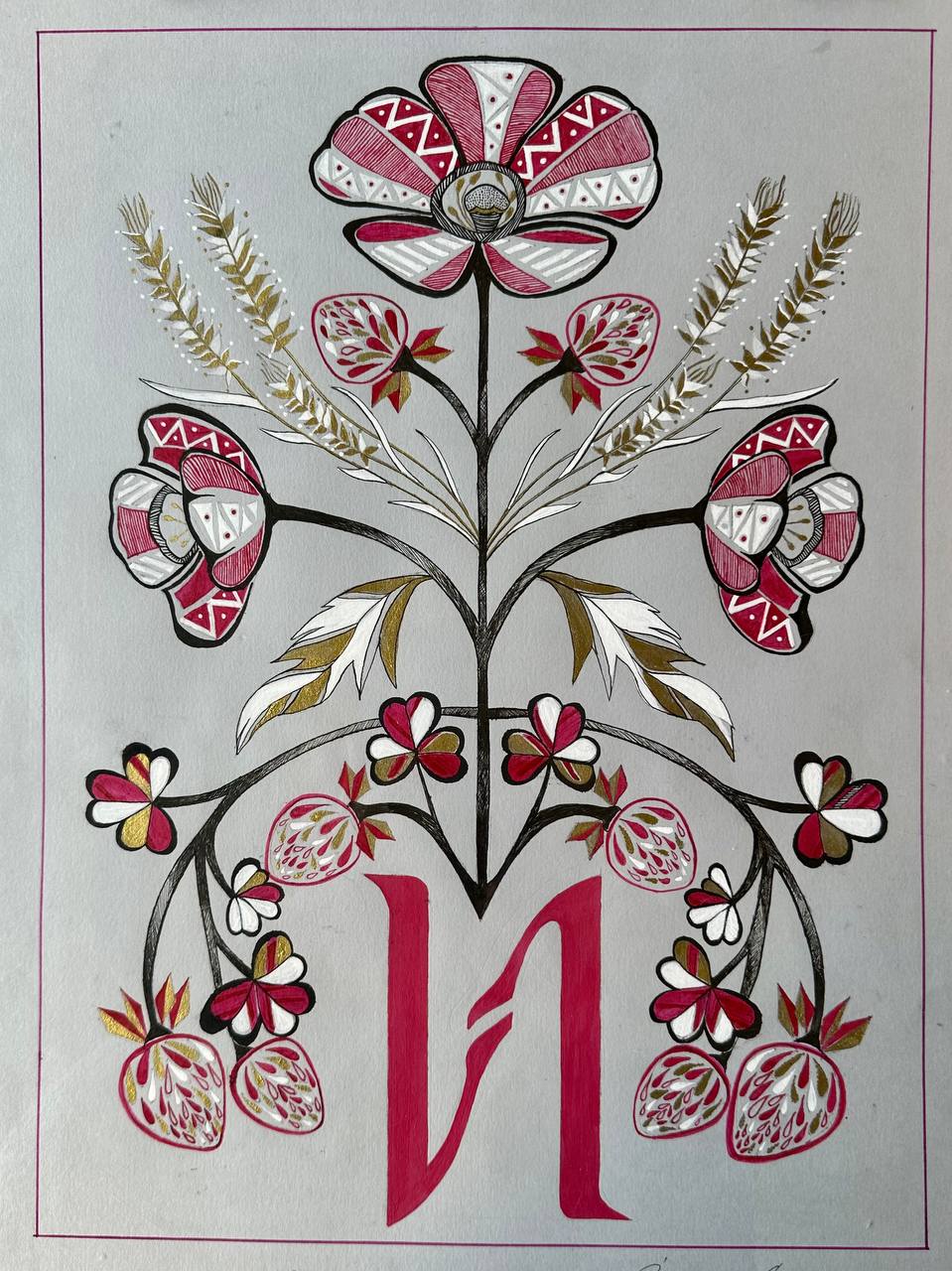 мотиву, всі літери мають різний флоральний варіант. Це викликає ще і ремінісценції