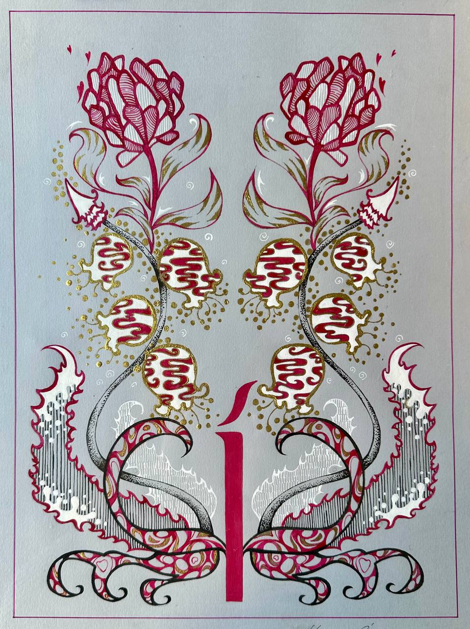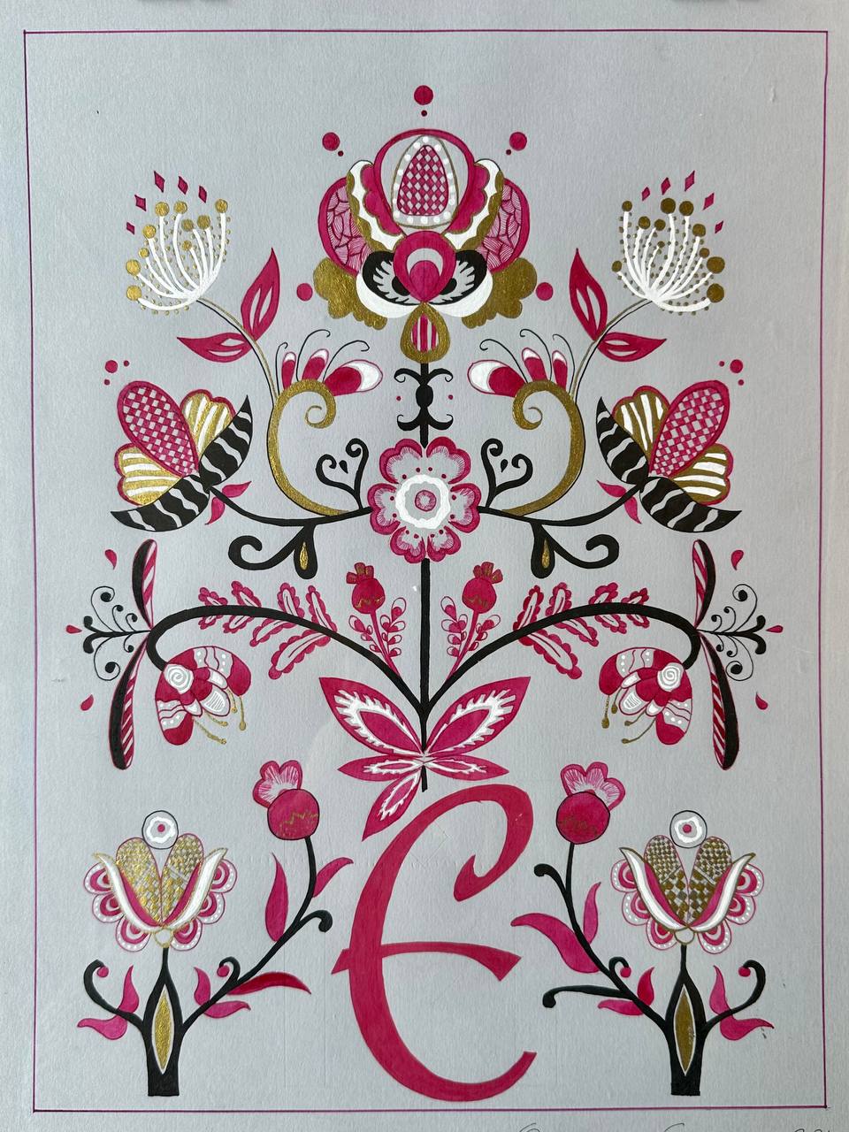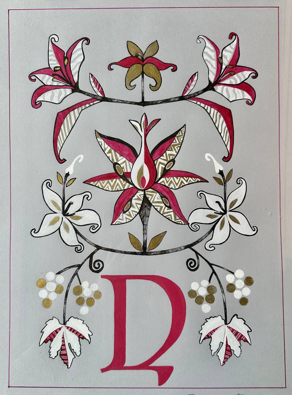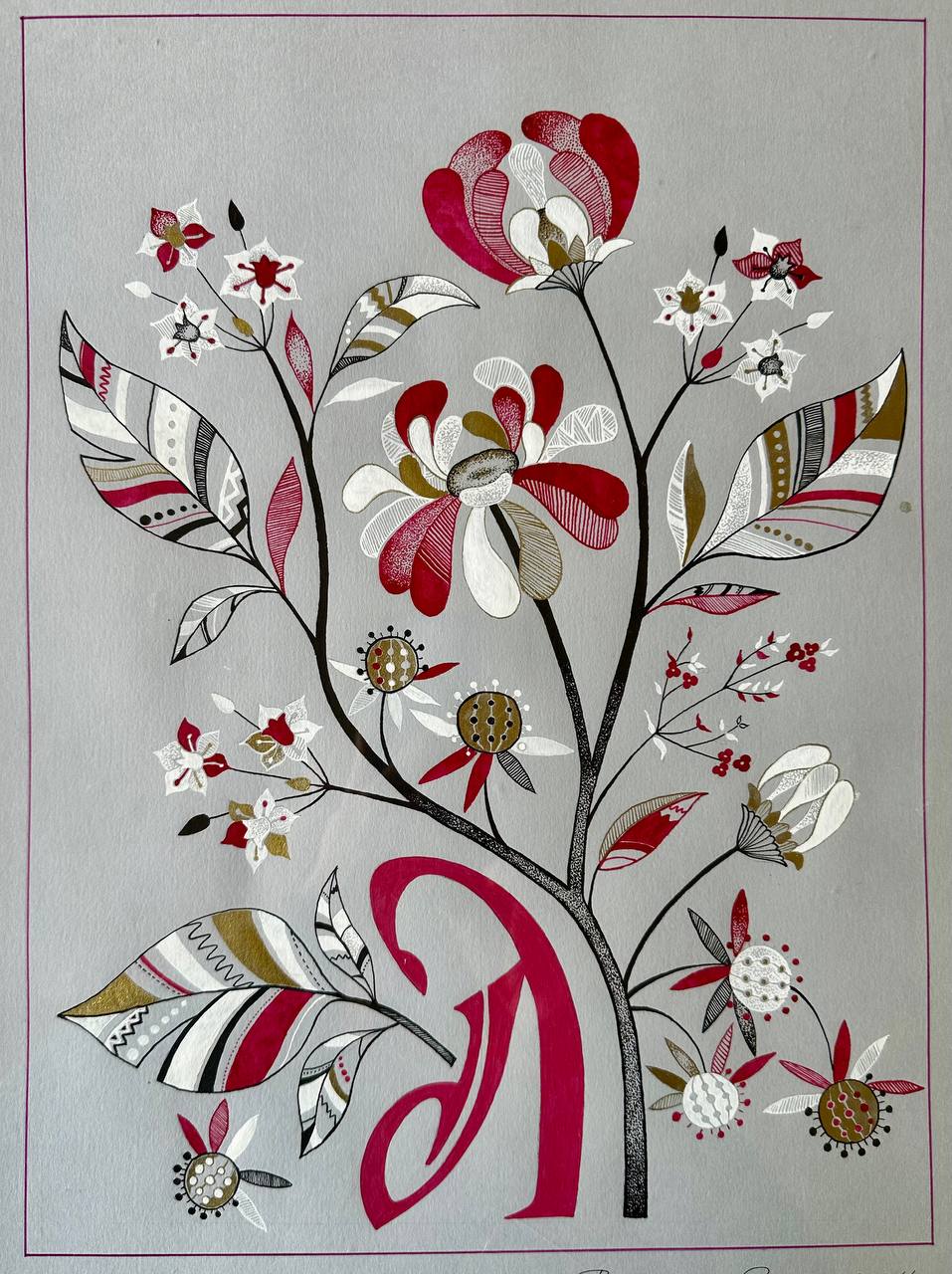 мотиву, всі літери мають різний флоральний варіант. Це викликає ще і ремінісценції