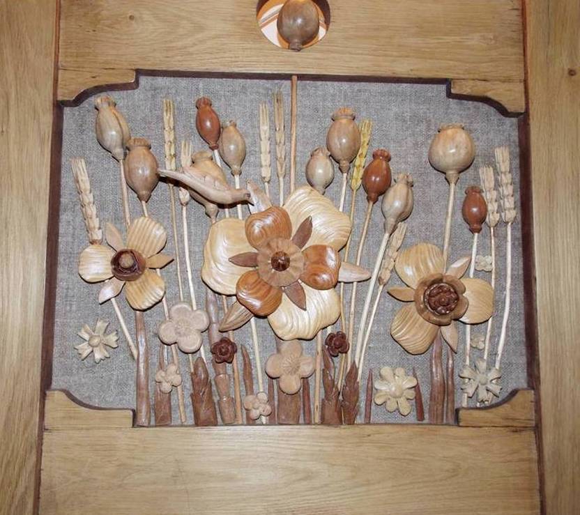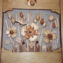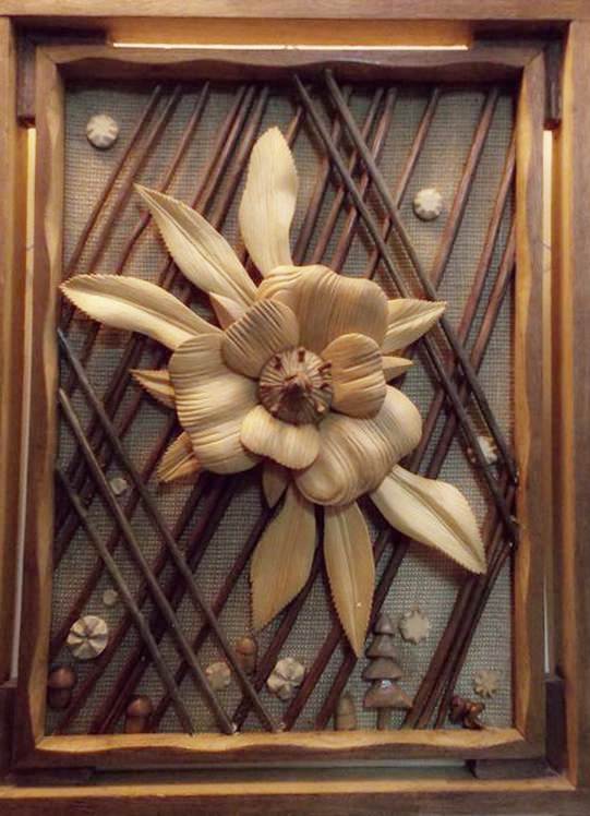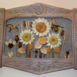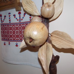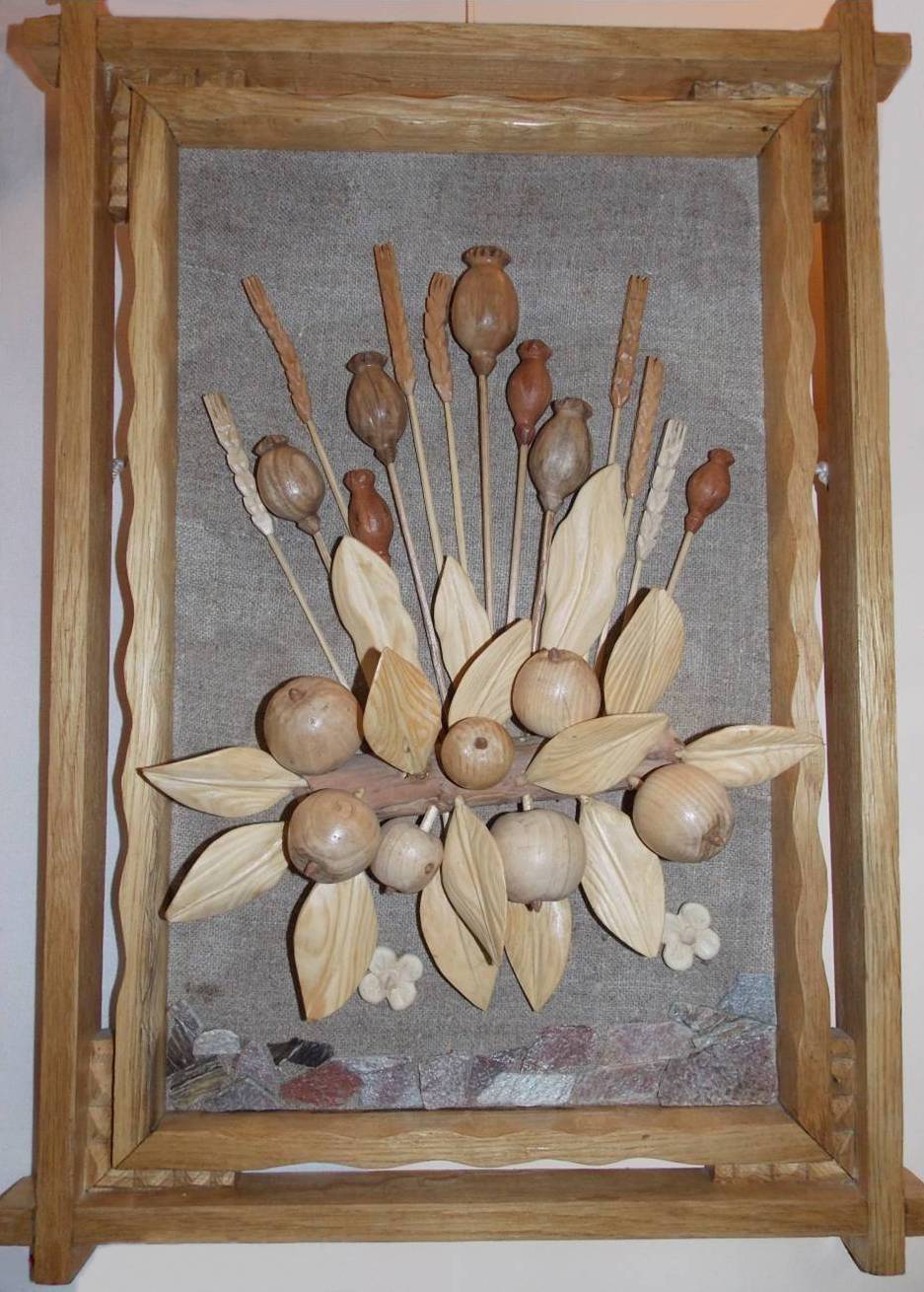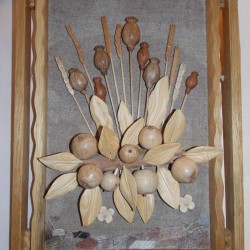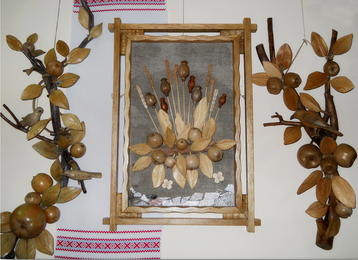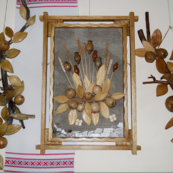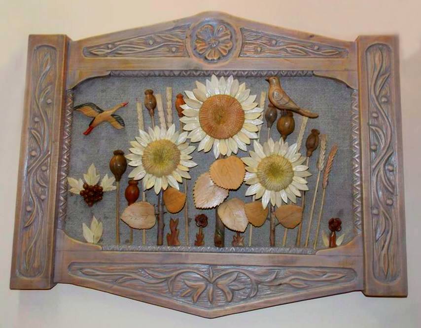 Кожна робота майстра – це окрема розповідь. Через природні матеріали він намагається передати багатограння світу, красу рідної природи. Особливо багато в його колекції композицій із яблуками, грушами, соняшниками, маками, птахами. Вони радують душу красою, гармонією і теплою енергетикою.