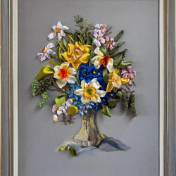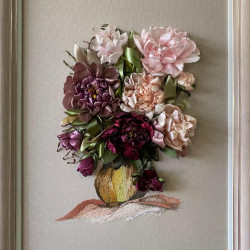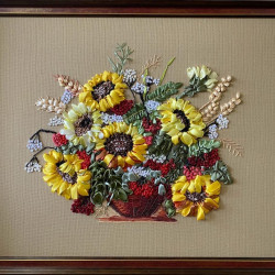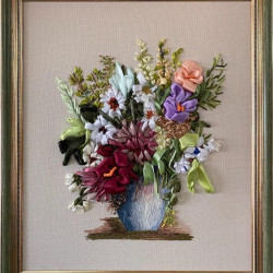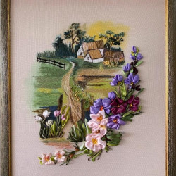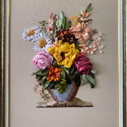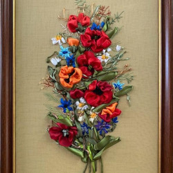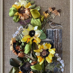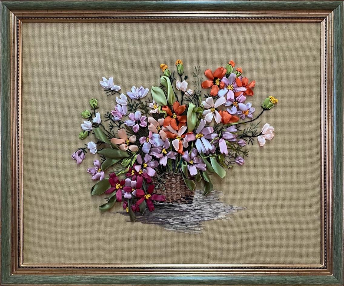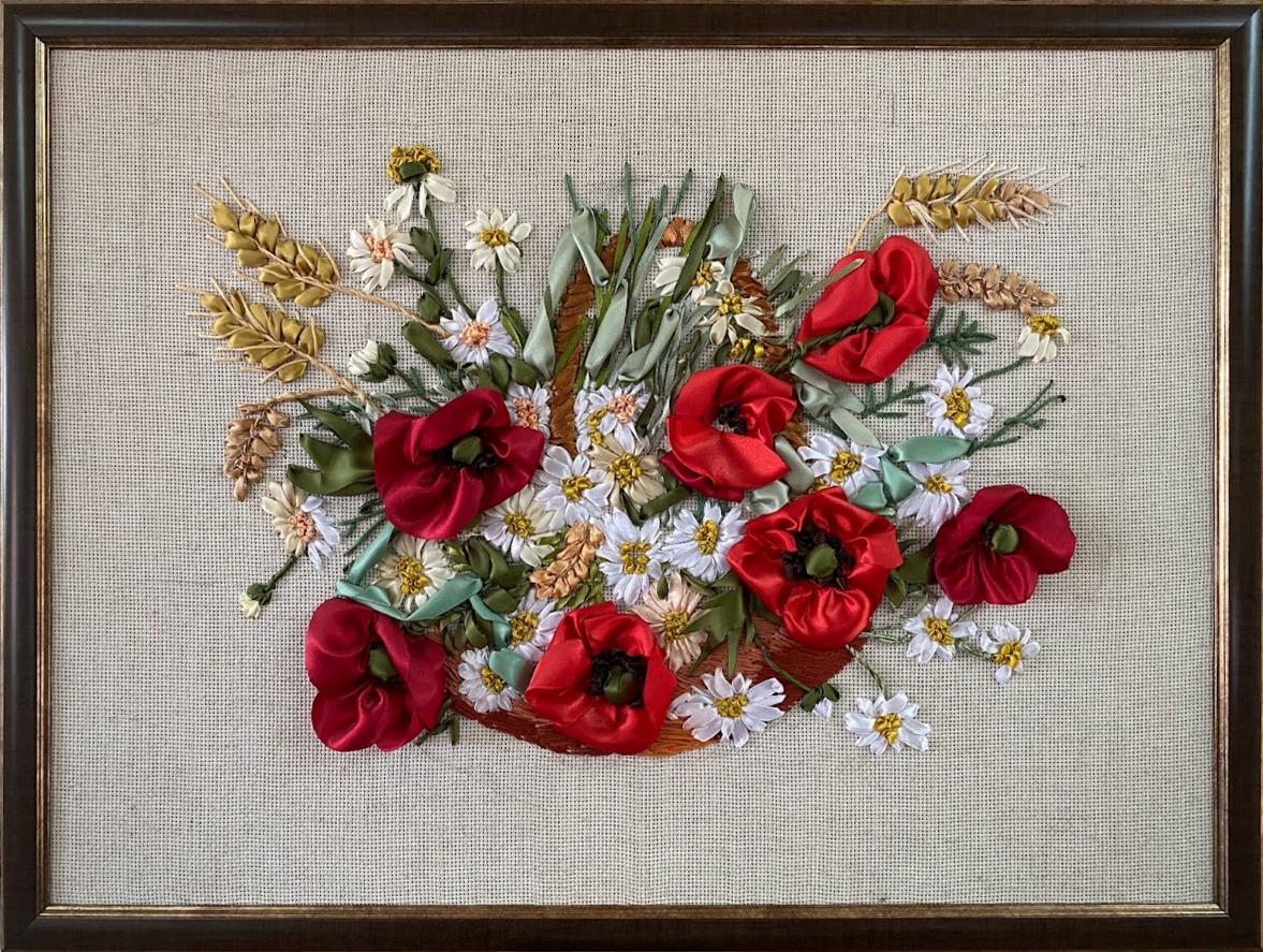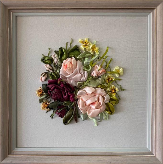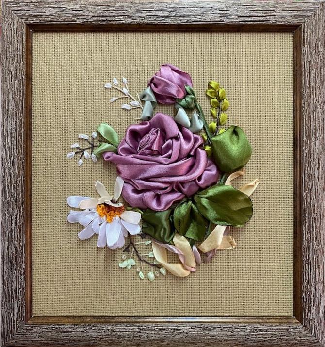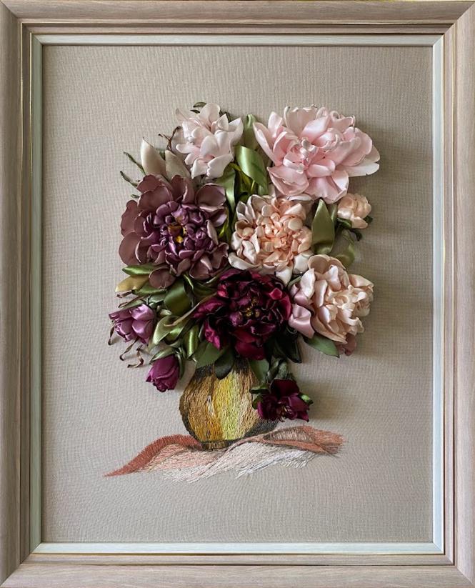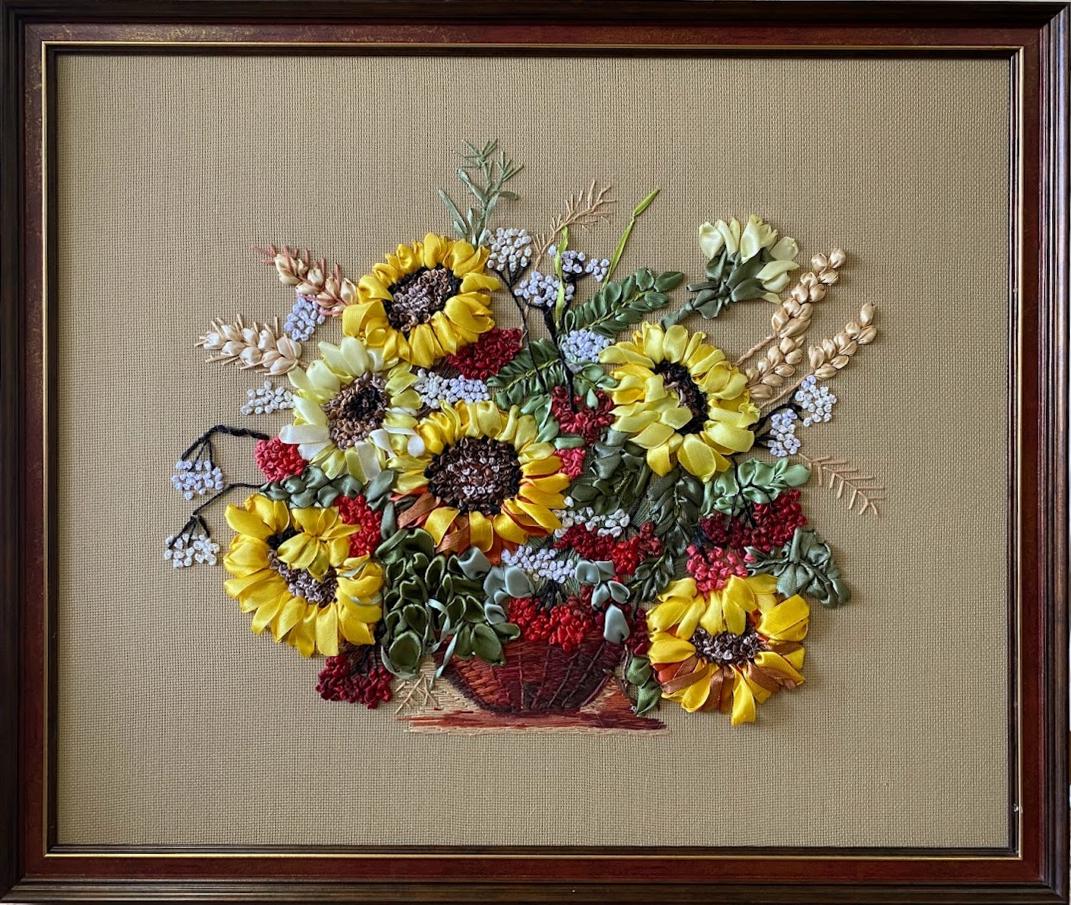 Лариса Скуратова – створює живописні картини атласними стрічками та нитками, є бібліотекарем з великим стажем роботи, на даний час – завідувач публічно-шкільної бібліотеки с. Великий Олексин. Сім’ю має творчу, тому образотворче мистецтво їй близьке. А ще вона працювала вчителем образотворчого мистецтва у Великоолексинському ліцеї. Вишивкою стрічками почала займатись 6 років тому, після того як в книгарні натрапила на книгу «Вишивка атласними стрічками».
