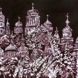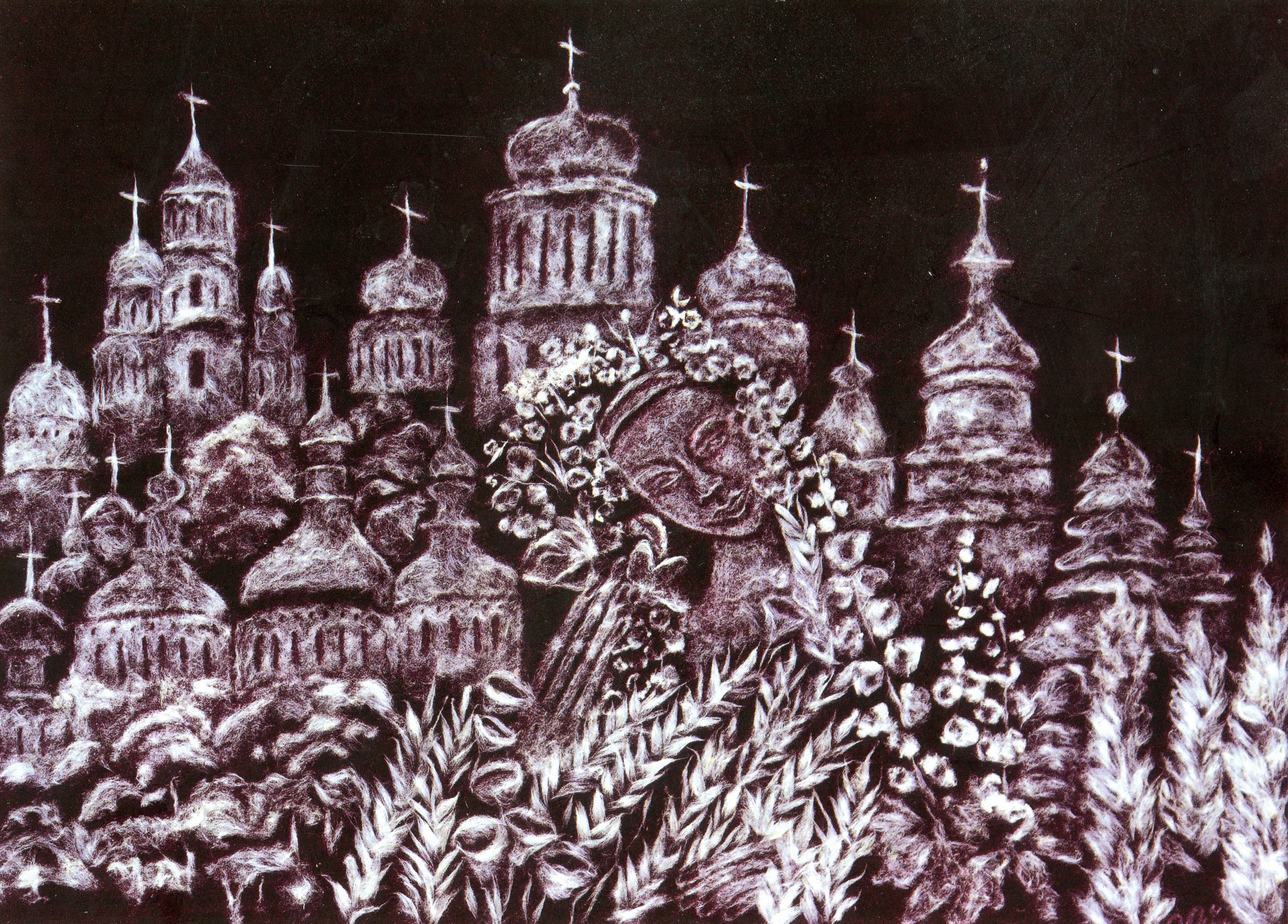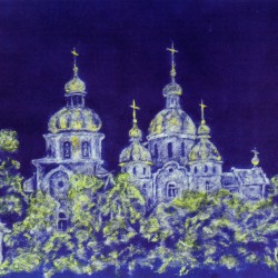 Художниця в техніці тополиного пуху на оксамиті, м. Березне.