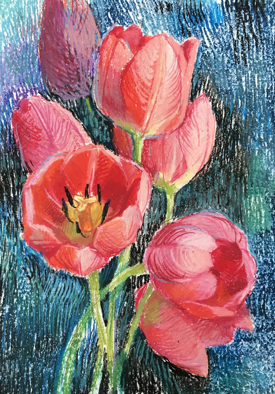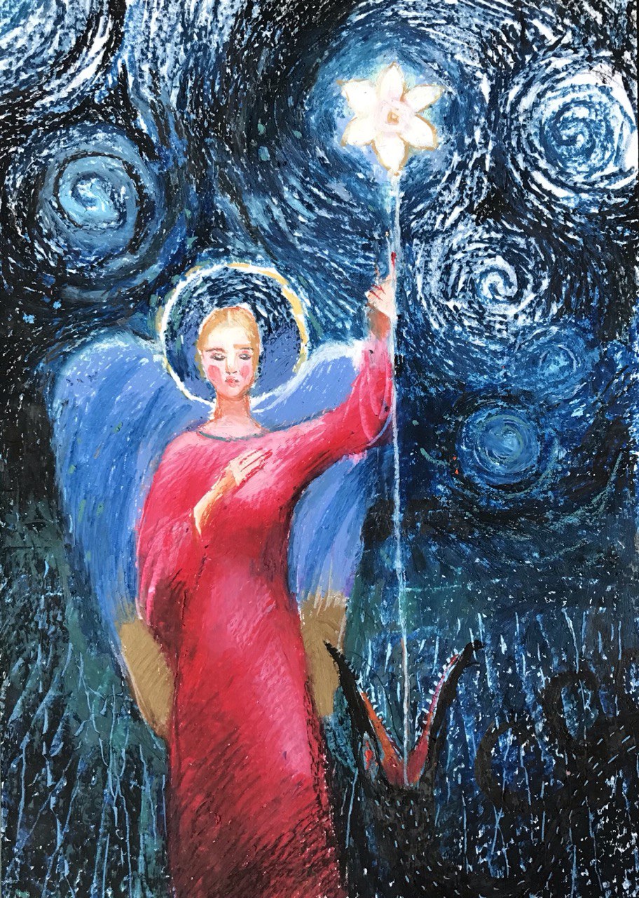 у техніці олійної пастелі. Вони надихають і зачаровують. Є роботи духовного