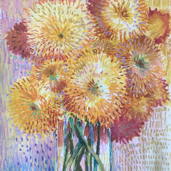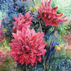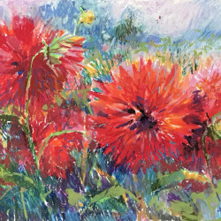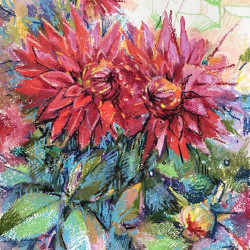 різної тематики, але найбільше – квітів. Жоржини і троянди, півонії і соняхи,
