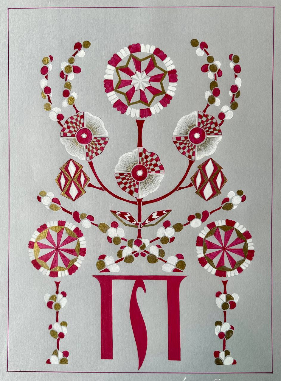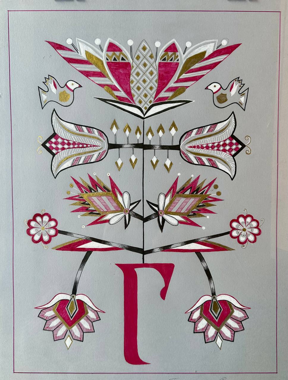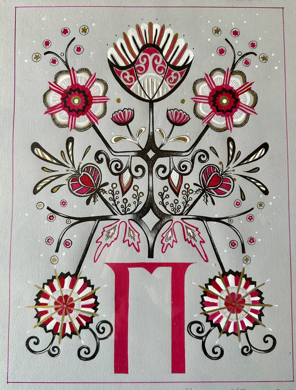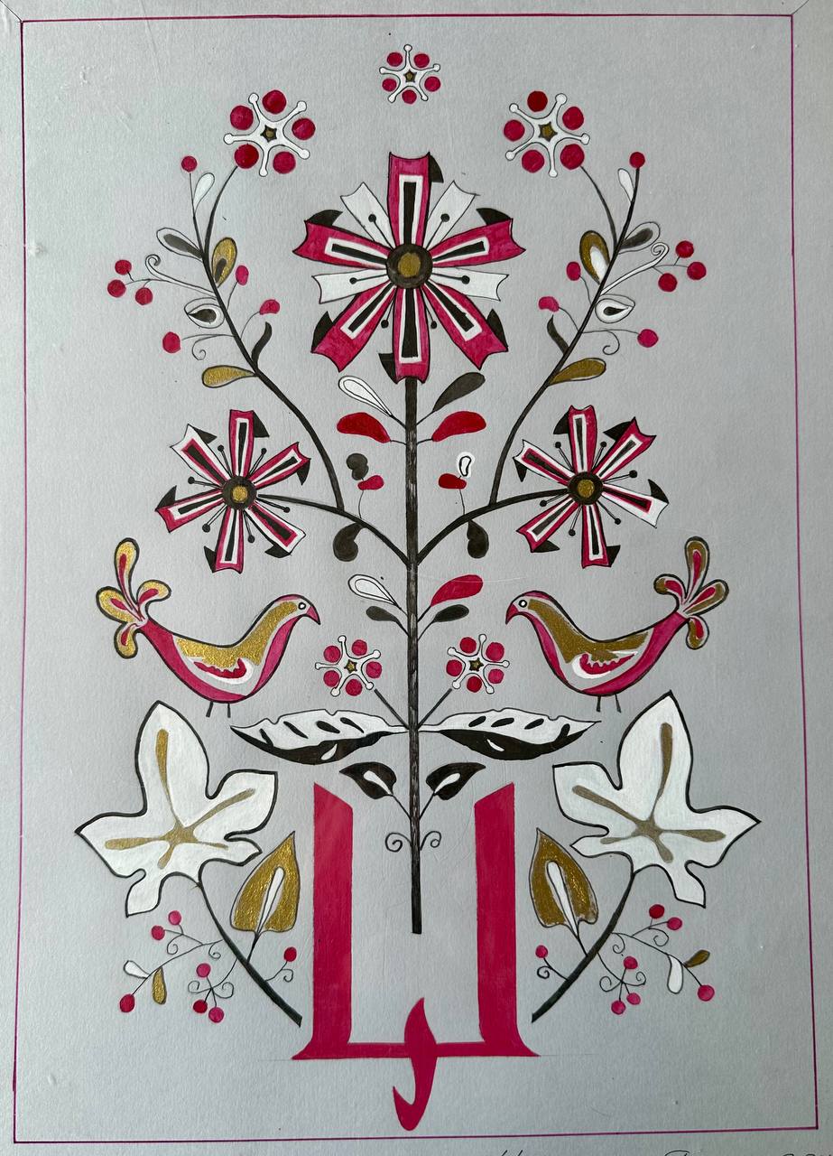 мотиву, всі літери мають різний флоральний варіант. Це викликає ще і ремінісценції