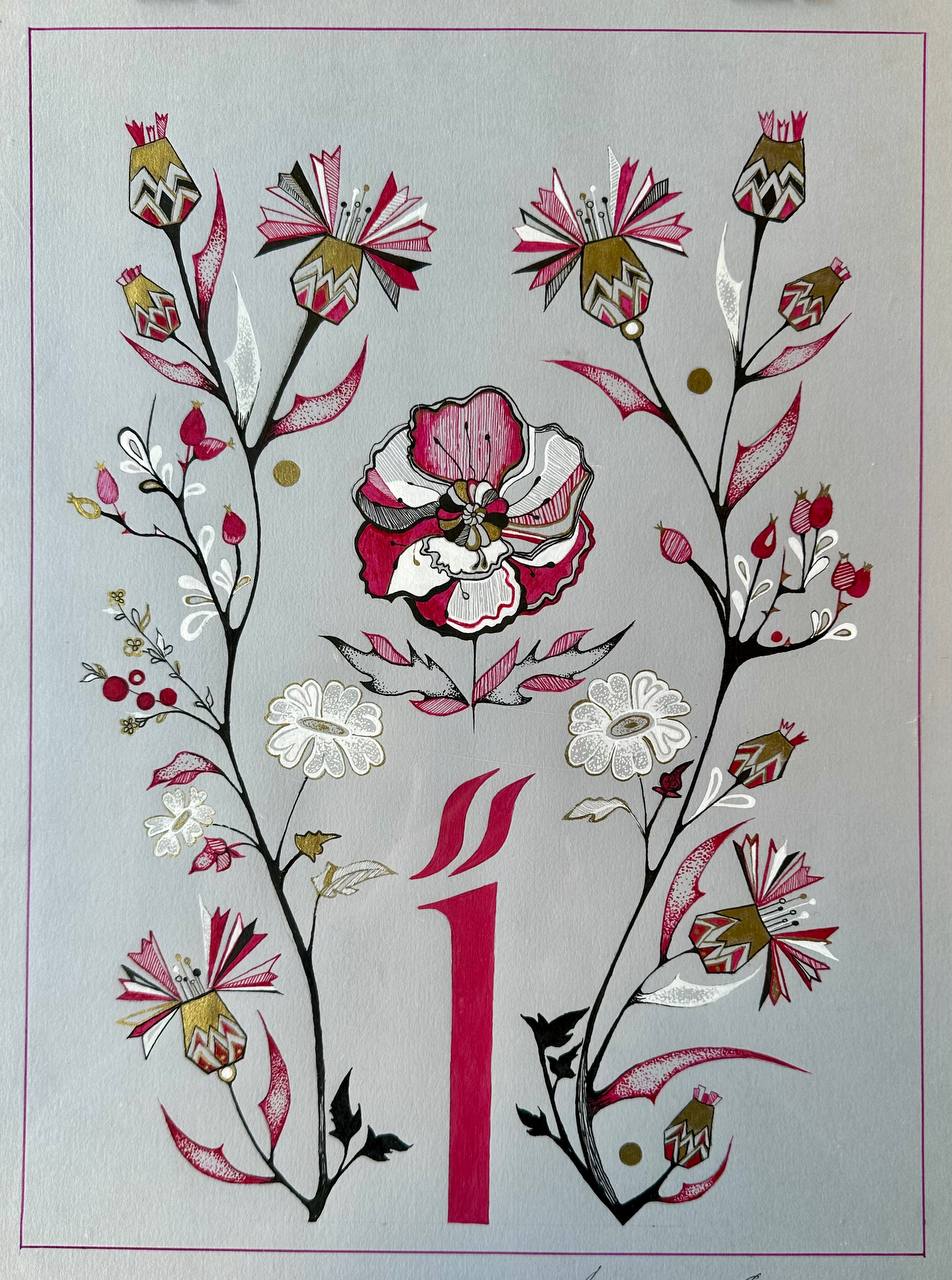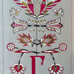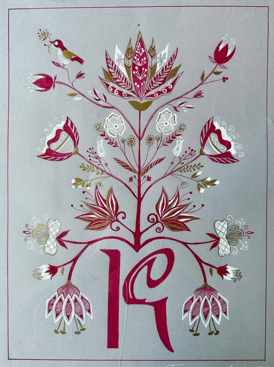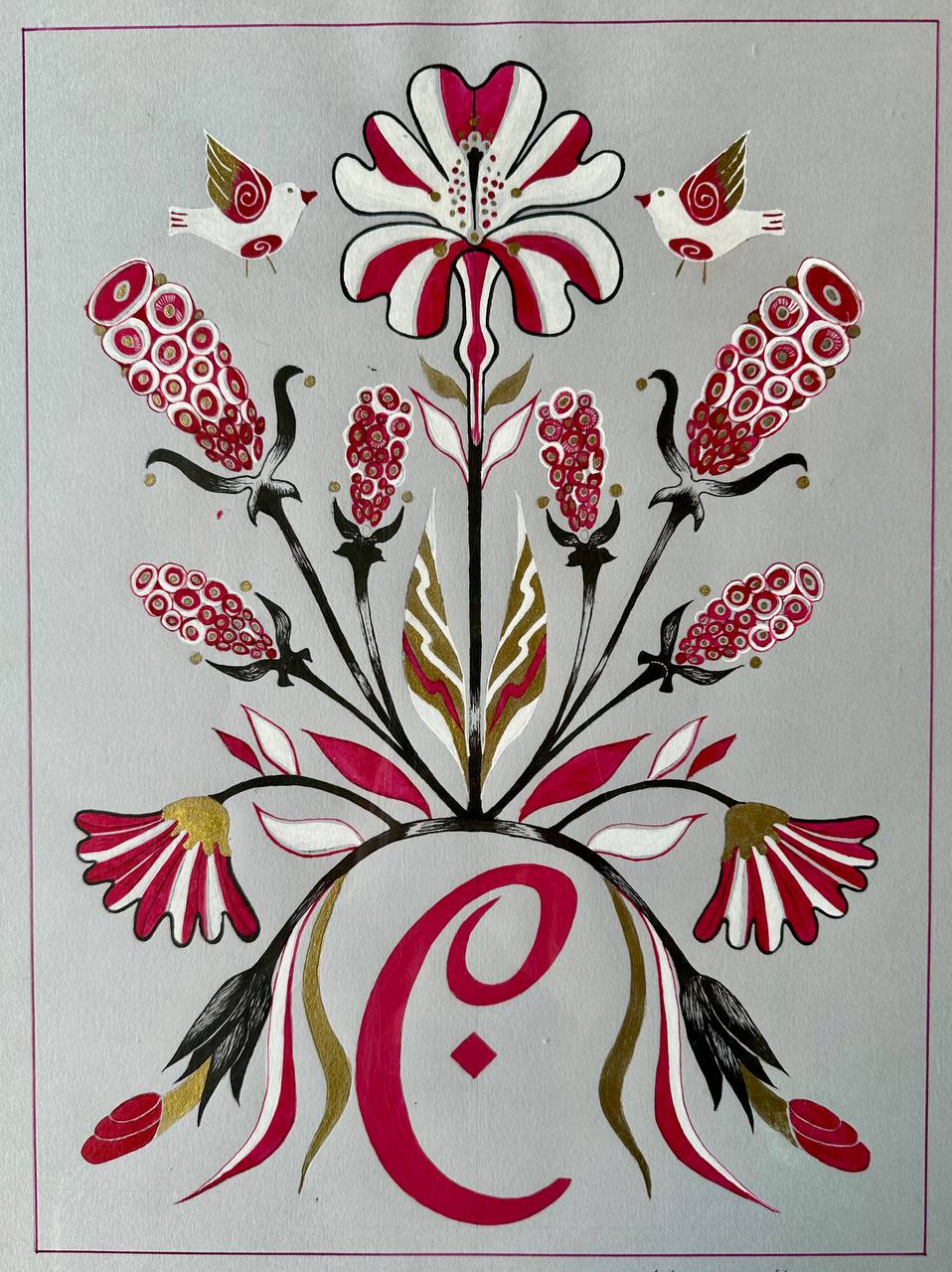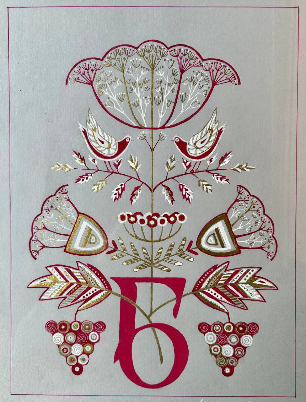 мотиву, всі літери мають різний флоральний варіант. Це викликає ще і ремінісценції