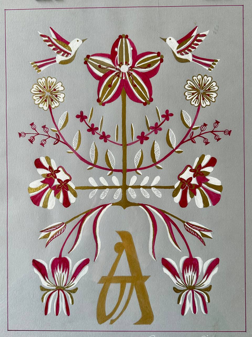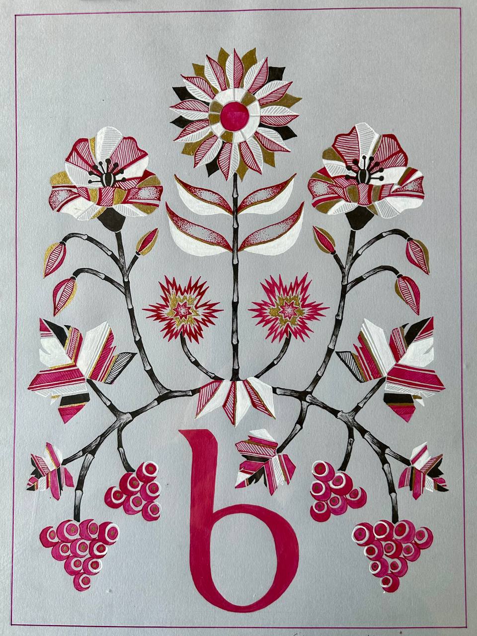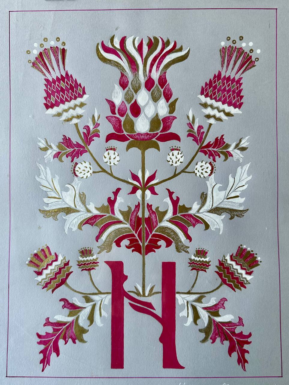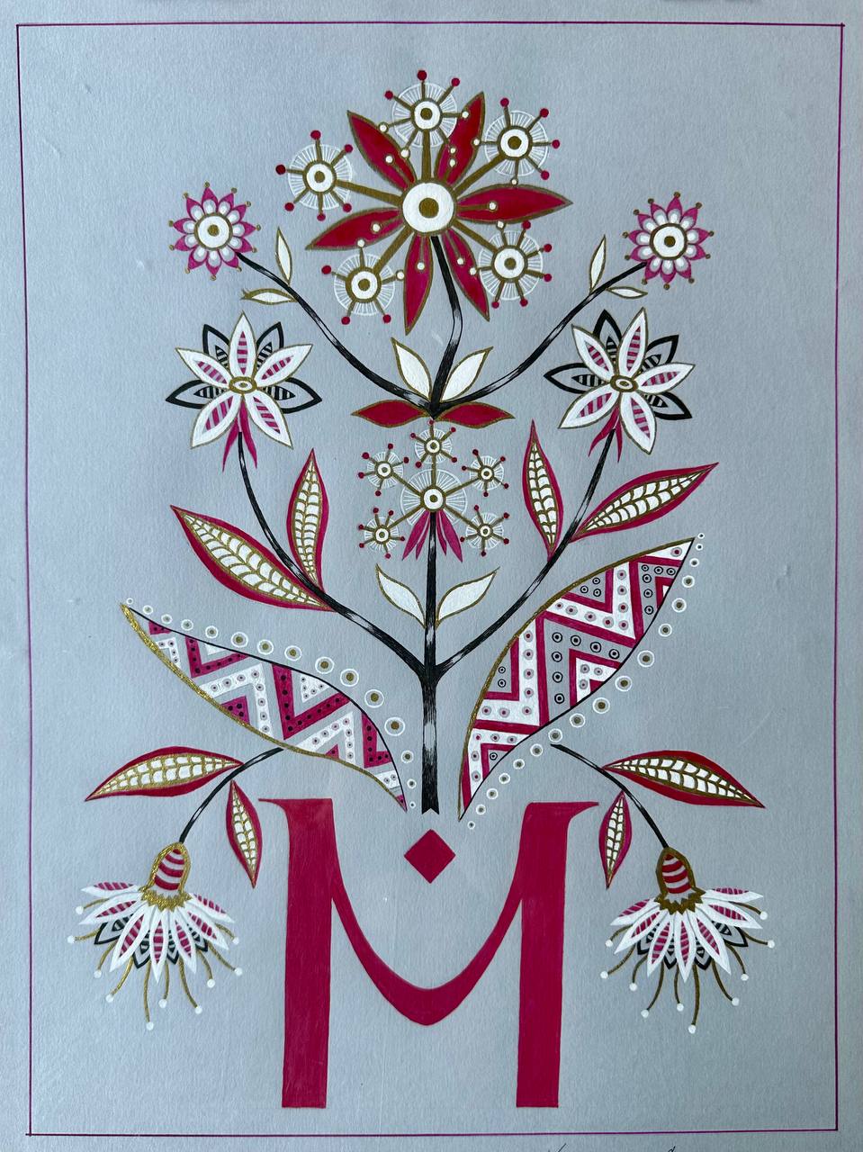 мотиву, всі літери мають різний флоральний варіант. Це викликає ще і ремінісценції