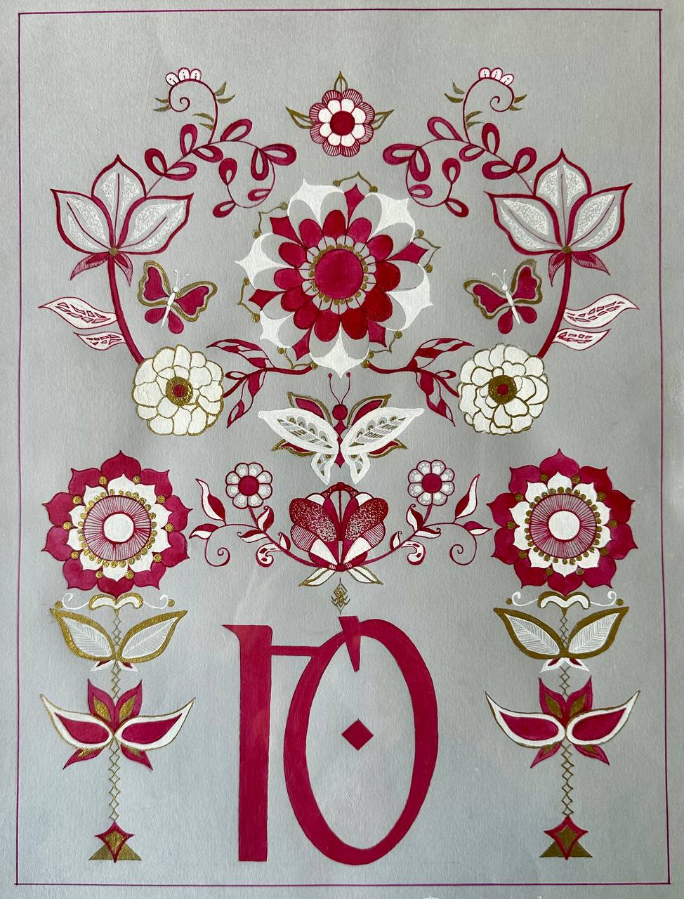 основі флоральних композицій-мальовок, «заплетених» у своєрідні пентаграми, що